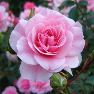Нежные цветки розы Боника покоряют своей изящной красотой. В стадии бутона и при полном роспуске сохраняется нежно-розовая, бледная окраска, которая создает ощущение легкости и свежести. Каждый средний по размеру, диаметром около шести-семи сантиметров, махровый цветок является частью пышного соцветия. На одном стебле обычно раскрывается от трех до пяти таких бутонов, образуя многоцветковые кисти. Несмотря на визуальную пышность, аромат у этого сорта довольно слабый, ненавязчивый, что делает его идеальным для тех, кто предпочитает визуальную эстетику без сильного запаха. Листва дополняет образ: чисто-зеленые матовые листья служат прекрасным фоном для обильного цветения.
